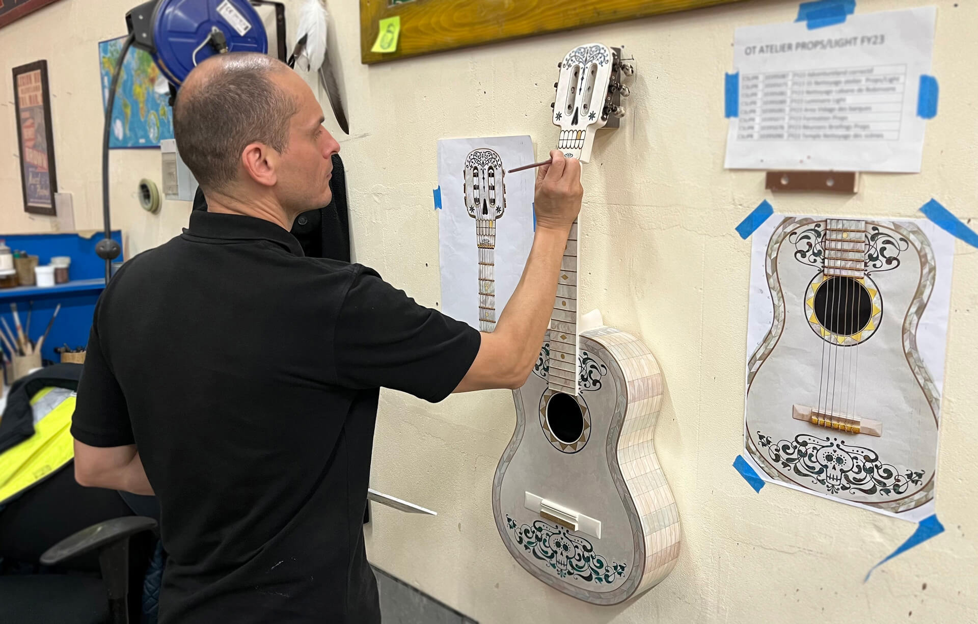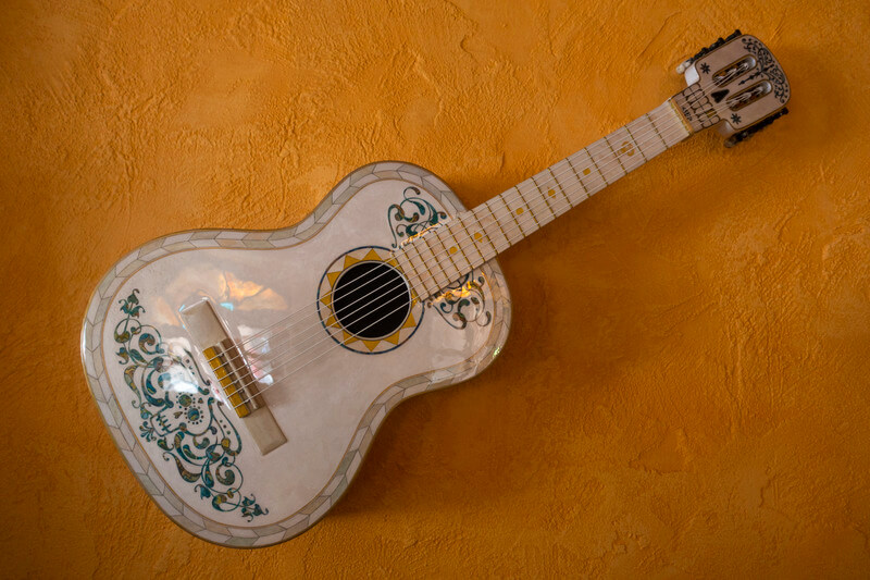 Dans « la Sala de Música », le joyau de l’héritage familial des Rivera redécouvert par Miguel, est fièrement exposé parmi de nombreux instruments de musique. La guitare d’Héctor occupe une place de choix et, au fond de la salle, on peut également lire des notes tirées des pages de son journal intime. Pour transposer ces éléments uniques de l’écran à la réalité, aucun détail n’a été épargné, Pixar ayant partagé ses références originales avec les Imagineers.