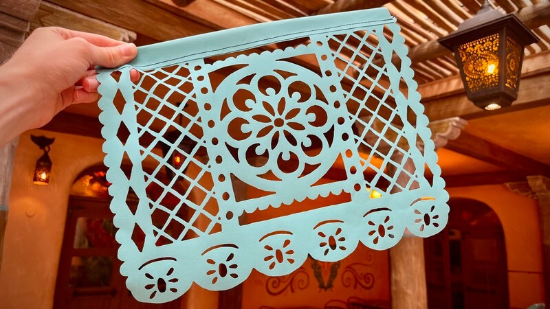 Alors que vous poursuivez votre voyage et entrez dans le patio, levez les yeux et admirez les Papel Picados colorés ! Cette tradition mexicaine a inspiré les artistes Pixar, qui ont utilisé les papel picados pour nous compter pendant la scène d’ouverture du film, le passé de la famille Rivera. Pour le restaurant, près de 200 papel picados inspirés du folklore mexicain ont été créés par les Imagineers !