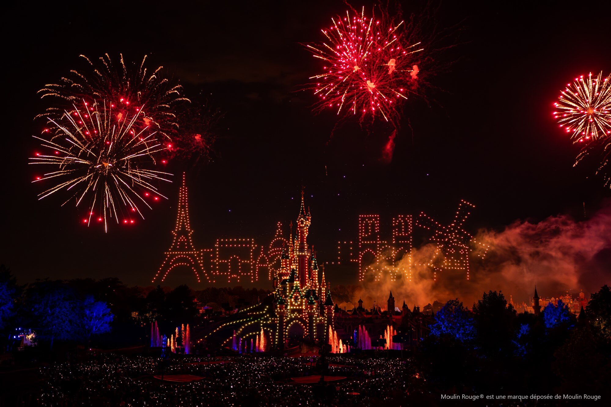 Mêlant pyrotechnie, lumières et ballet de drones, ce spectacle a rendu hommage aux liens si particuliers entre Disneyland Paris et la France. 1495 drones ont ainsi représenté au-dessus du Château de la Belle au Bois Dormant certains des plus grands symboles de la culture française, comme les couleurs du drapeau français, la Tour Eiffel ou encore l’iconique rosace de la Cathédrale Notre-Dame de Paris.