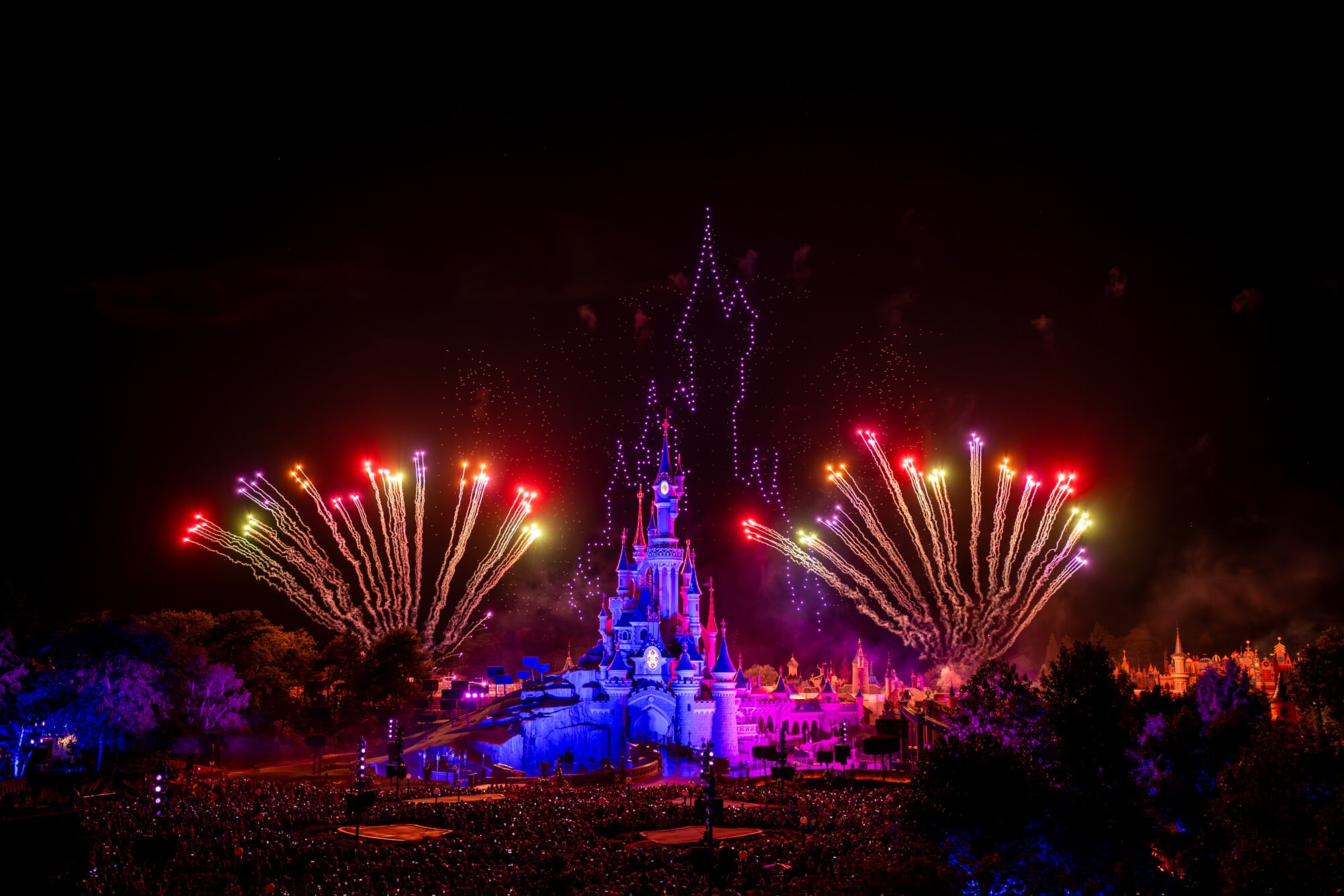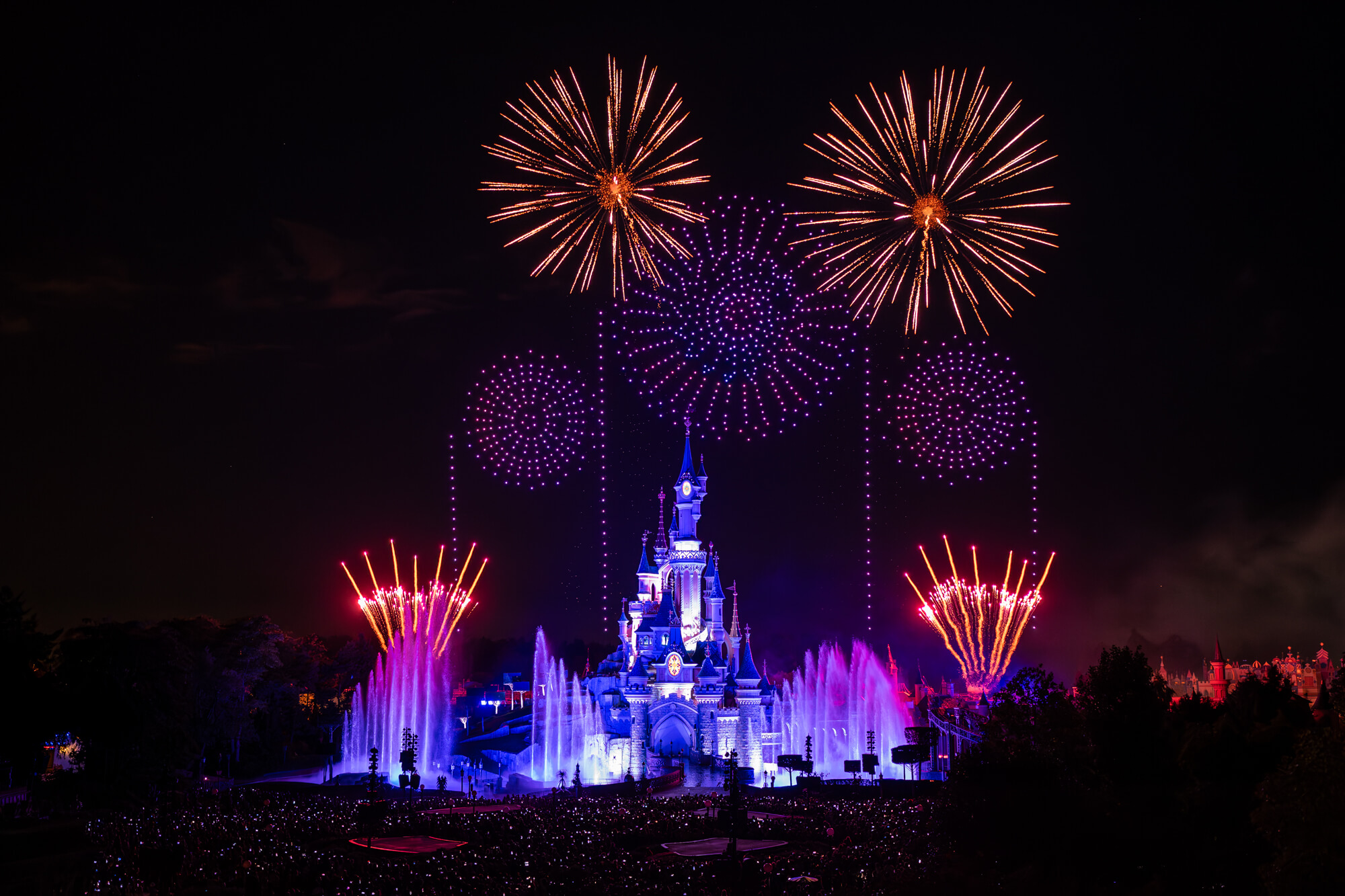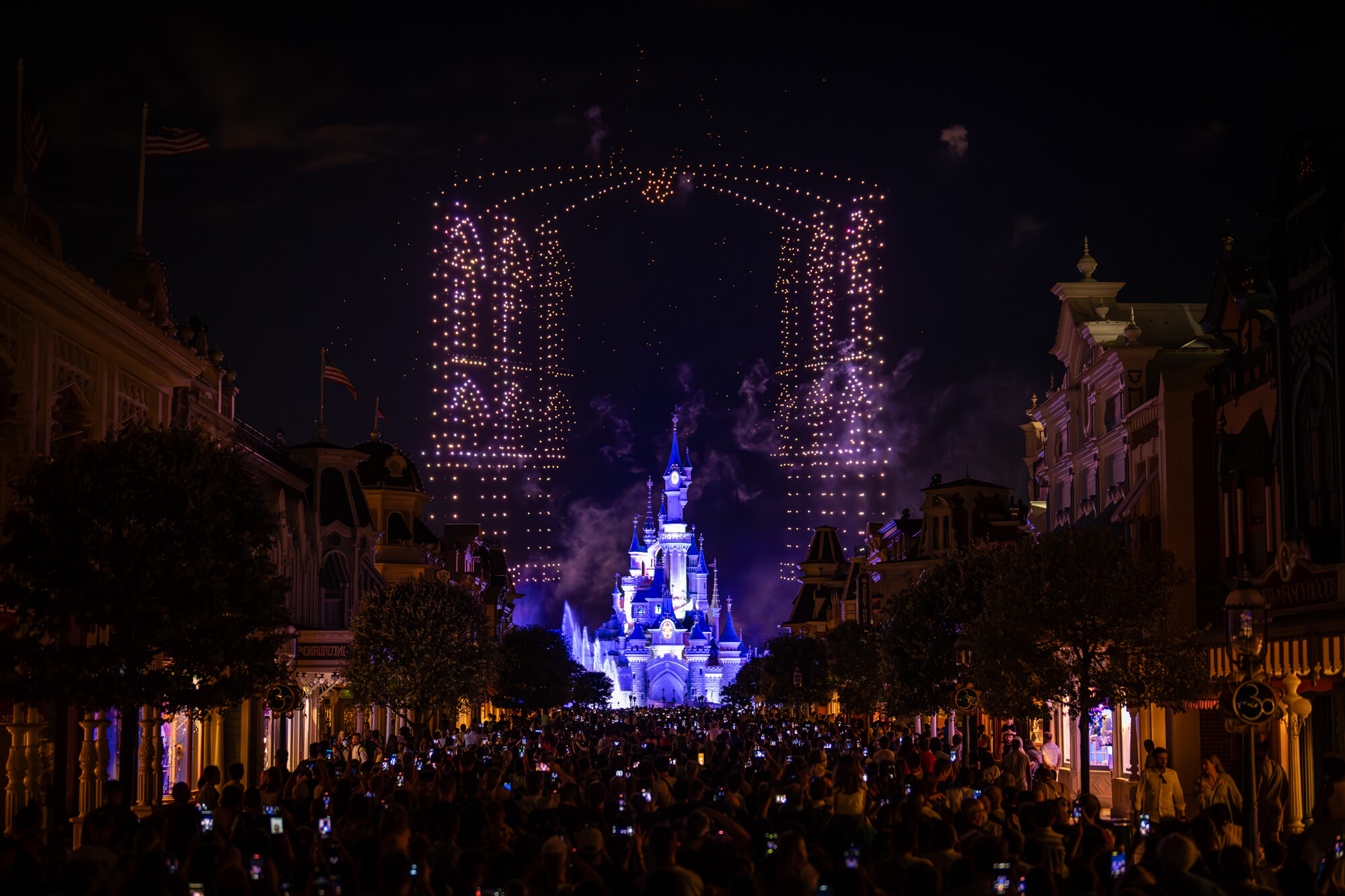 Ce vendredi 14 juillet, Disneyland Paris a repoussé les limites de l’innovation, en surprenant ses visiteurs grâce à un spectacle nocturne exceptionnel joué à l’occasion de la Fête Nationale. A cette occasion, un nouveau record européen a été établi, avec 1495 drones volant simultanément au-dessus du Château de la Belle au Bois Dormant.