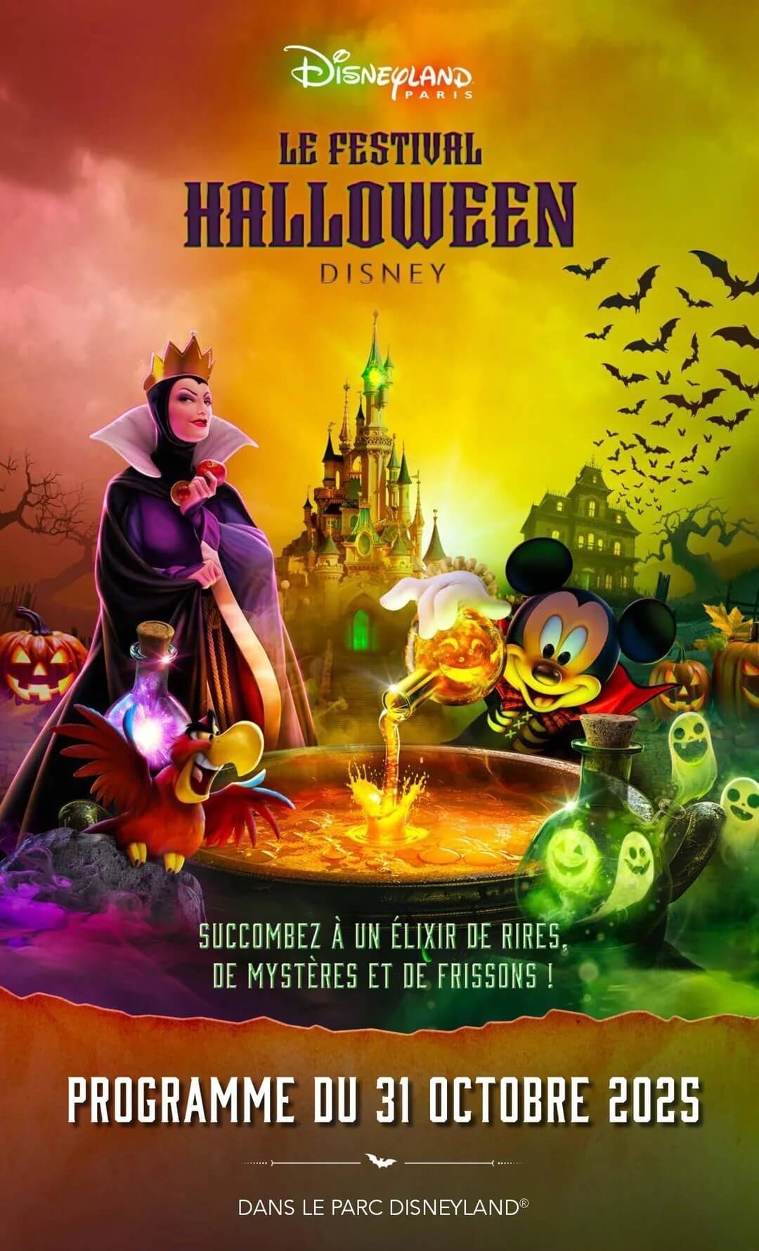 Plongez au cœur d’une atmosphère mystérieuse et envoûtante, où les frissons se mêlent à la magie Disney. Le Parc Disneyland célèbre Halloween comme jamais, avec des spectacles exclusifs, des rencontres pleines de malice et une ambiance ensorcelante qui transforme chaque recoin du parc.