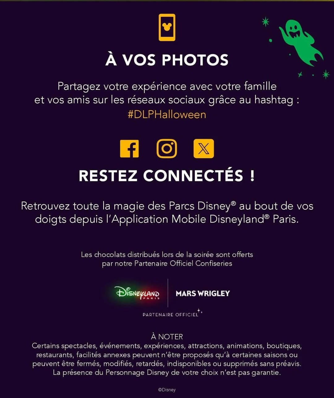 Tout au long de la journée et de la soirée, immortalisez vos plus beaux moments et partagez-les sur les réseaux sociaux avec le hashtag #HalloweenDisney.