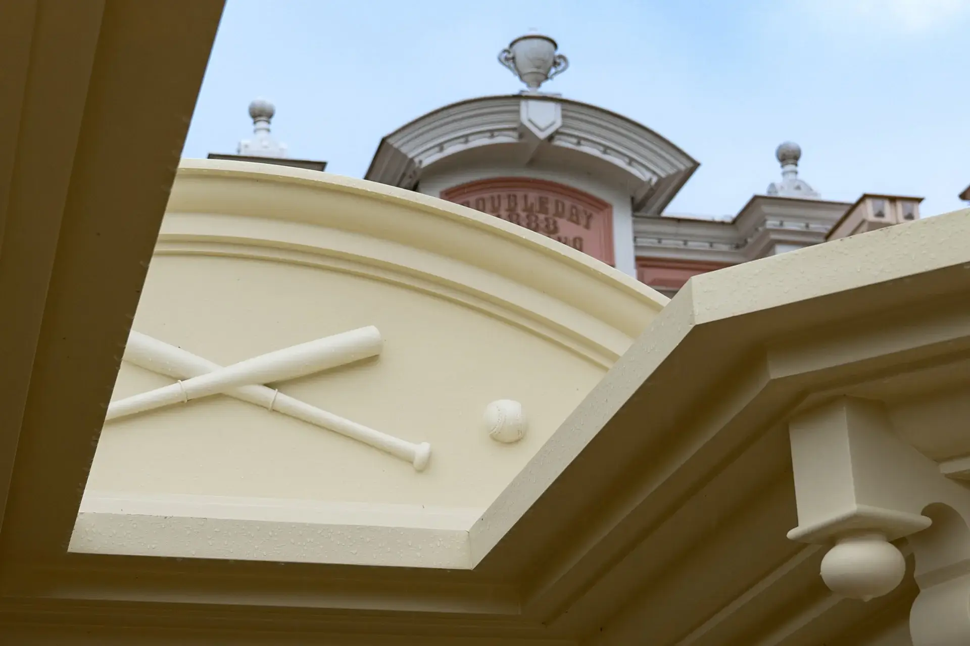 Comme un clin d’œil à l’univers de Casey’s Corner, on retrouve des touches thématiques un peu partout : des battes intégrées dans les barreaux des portillons, des rayons en forme de batte sur les frontons du toit, des motifs de balle sculptés dans les bas-reliefs… et même sur les chaises et les meubles de tri ! Un petit jeu de piste pour les yeux, que l’on découvre au fur et à mesure.